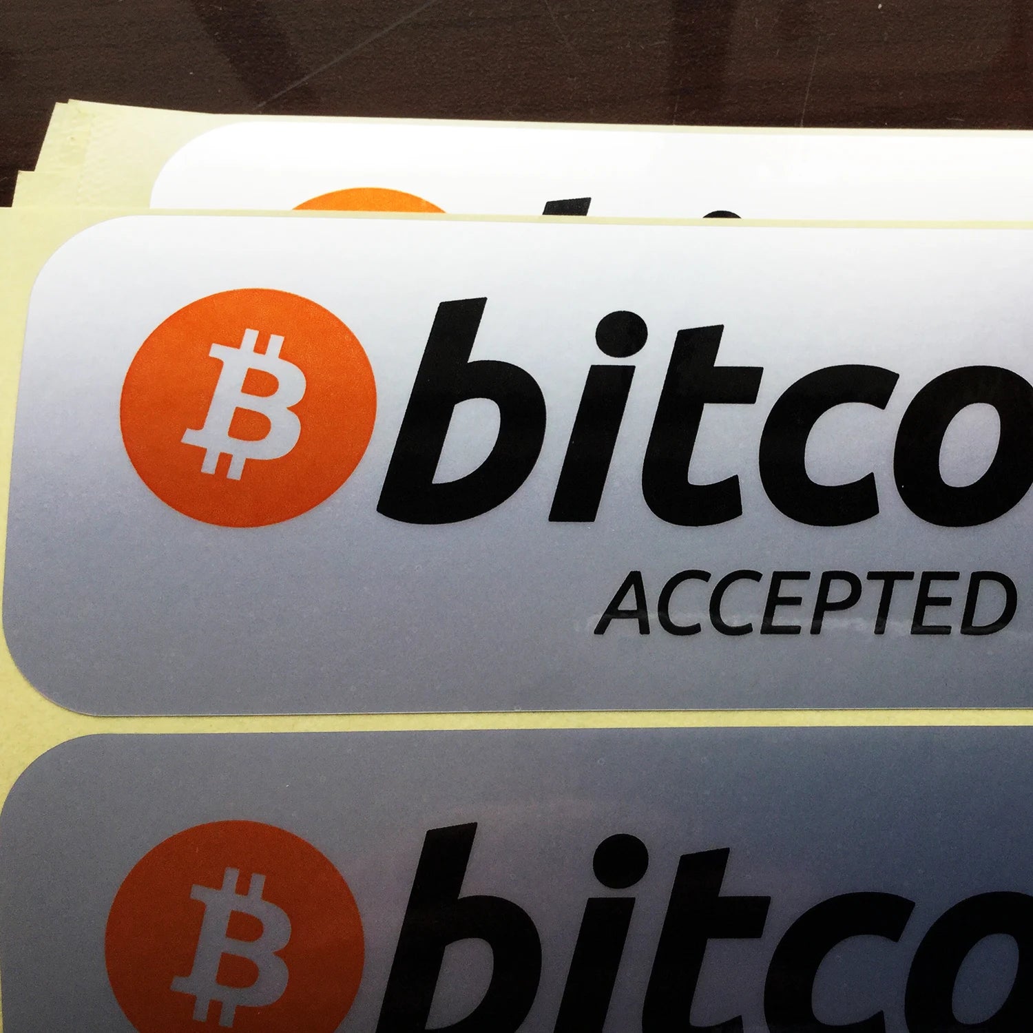 10pcs 14.5x5.5cm Bitcoin Accepted Here Label Sticker Shop Crypto