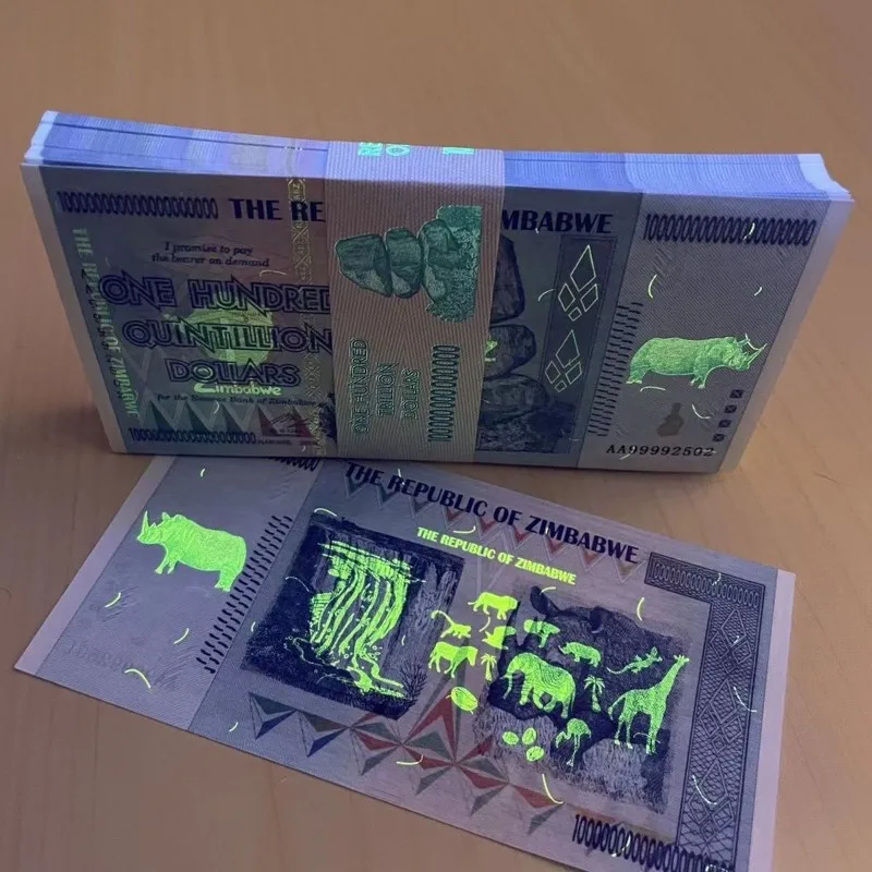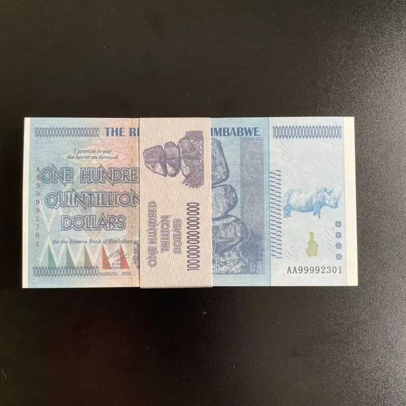 Zimbabwe One Hundred Quintillion Dollars Banknote with UV Anti-counterfeiting Serial Number Paper Money Gifts